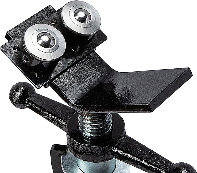 Двойная роликовая насадка для трубных опор Remmers Atlant 1/8-12, 2 шт. (Реммерс Атлант 1/8-12, 2 шт.) на скользящей площадке устанавливается с 2-х сторон V-образной опоры трубных стоек и фиксируются барашковым винтом. Направляющий ролик используется для снижения момента трения с возможностью приложения минимальных усилий при перемещении по опоре или вращении труб. Для подстройки под диаметр трубы площадка с роликами имеет возможность перемещения и фиксации в необходимом положении. Как правило, трубная опора используется совместно с резьбонарезными станками, желобонакатчиками, электрическими труборезами и т.д.