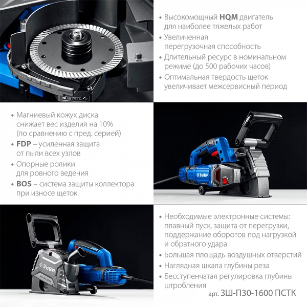 Преимущества штробореза Зубр Профессионал ЗШ-П30-1600 ПСТК:
